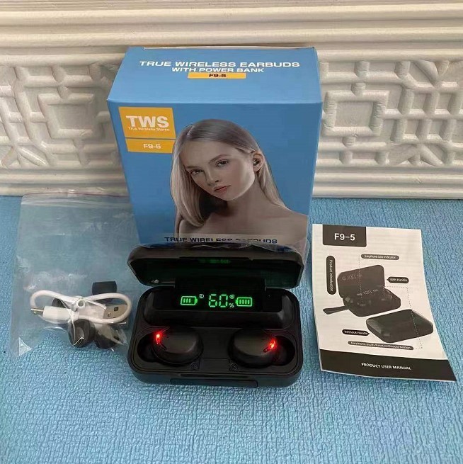 F9-5C Four-bar Breathing Light + Digital Display Noise Reduction Bluetooth Earphone