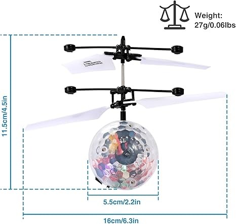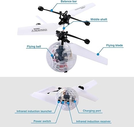 • Durable toys: Flying balls are made of environmentally friendly non toxic ABS material, safe enough to your kids as well as the environment. The wings are not easy to break or to be easily deformed. Very sturdy and will resist damage when it falls. And the ball drone will move away intelligently when it detects a solid object. Reduce the damage.