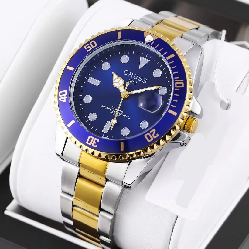 Elegant men's watch from ORUSS features a classic design with a blue dial and a stainless steel band. Powered by a reliable quartz movement, this timepiece offers precise timekeeping and a timeless aesthetic.