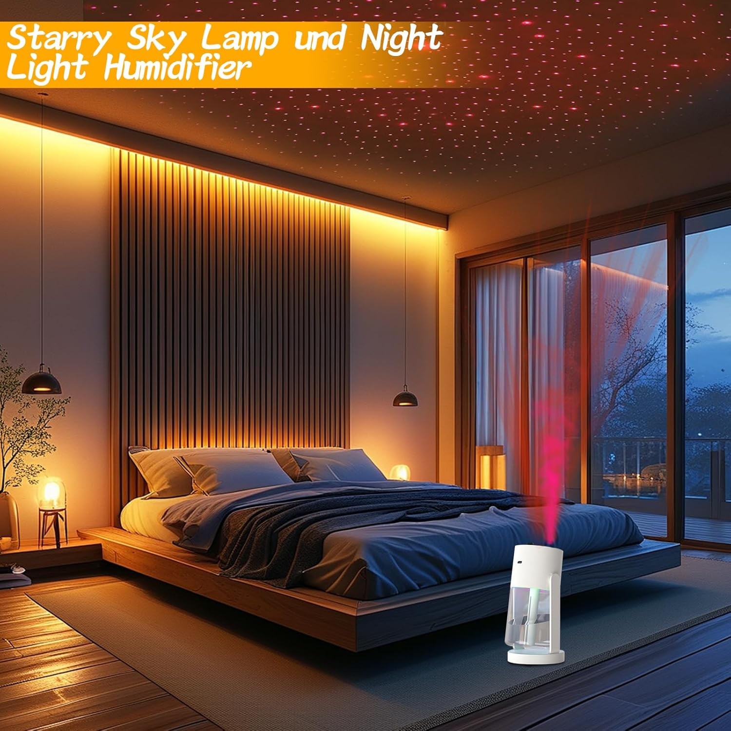 3. Starry sky light + night light design, the romantic combination of light and fog, colorful humidification