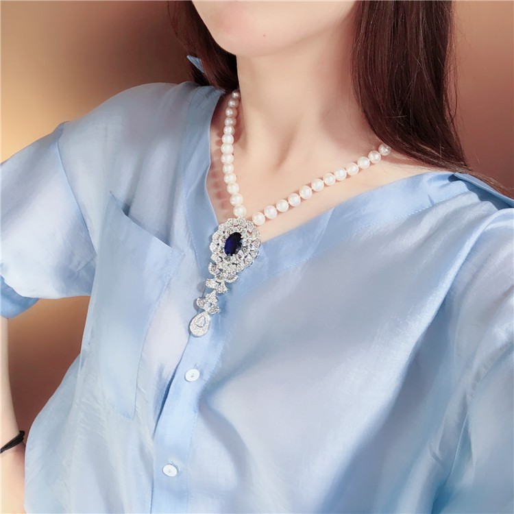 Design Aesthetic :Featuring a round, natural Freshwater Pearl and blue Zircon, this necklace exudes a boutique temperament.
